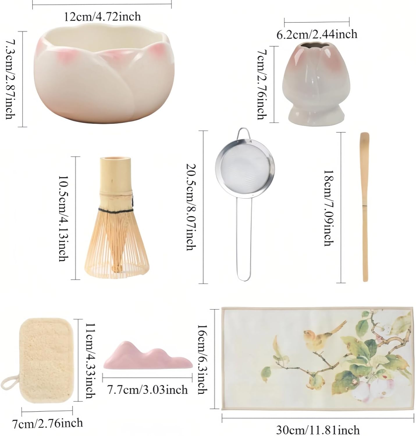 - 8 - in - 1 Matcha Set Complete matcha kit includes tulip - shaped matcha bowl, chasen (bamboo whisk), chashaku (bamboo scoop), sieve, cleaning cloth, etc. All tools for traditional/modern matcha preparation in one box.