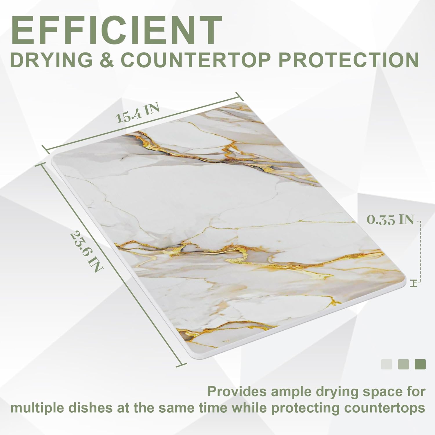 Large Stone Drying Mat for Kitchen Counter, 24" × 16" Diatomite Dish Drying Mat, Quick Dry Stone Mats, Ultra Absorbent Natural Diatomaceous Earth Mats for Dished, Bottles, White Marble