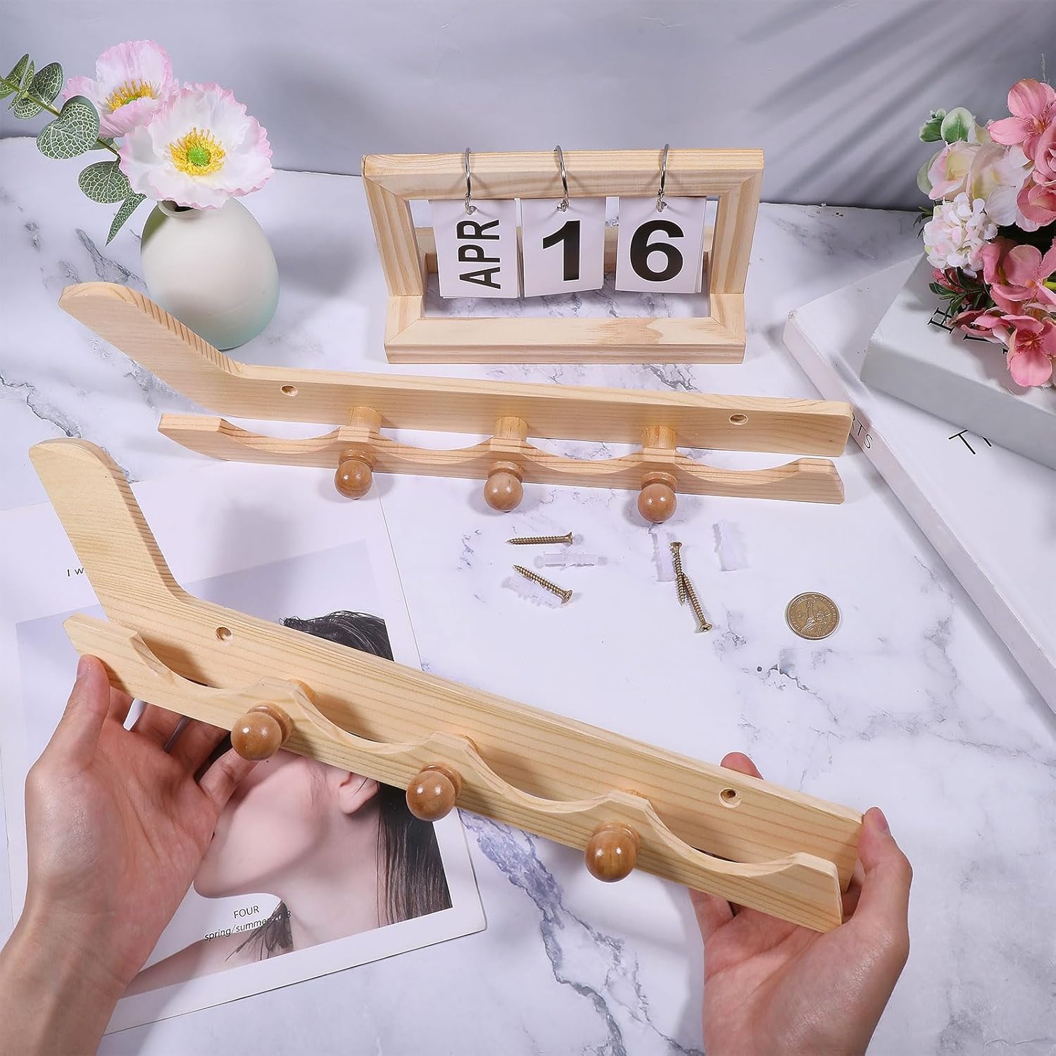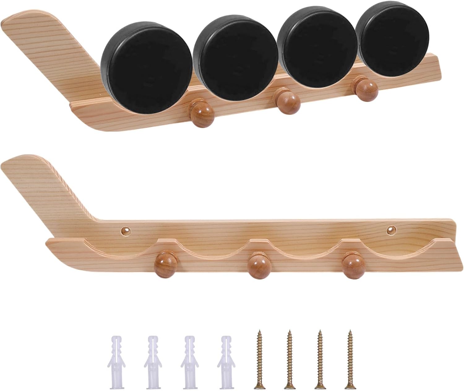 GLOBLELAND 2 Pack Wooden Hockey Puck Display Cases Wooden Wall Mount Holder with Screws Hook Hockey Display Holder for Players Team Gifts Living Room Storage Decoration Accessories