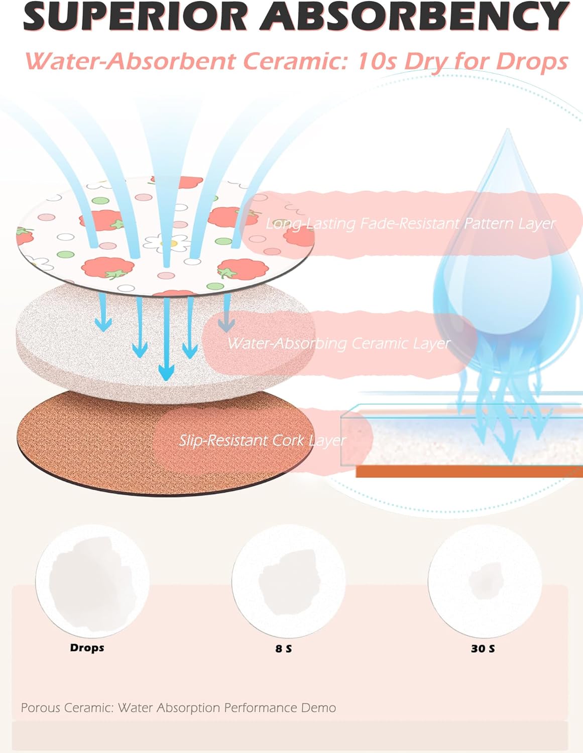 - β ππππππ πππππππππ Our ceramic coasters are designed to quickly absorb any moisture or condensation, keeping your surfaces dry and free from unsightly water rings