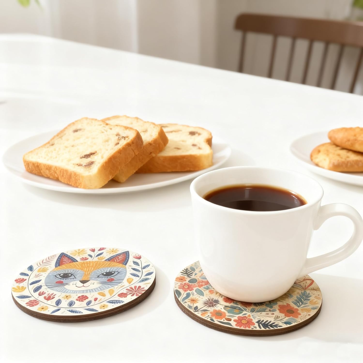 Wood Coasters Set of 6 - Handcrafted Drink Coaster Thick Heat-Resistant for Office, Bar, Farmhouse - Cute Cat Drink Cup Coasters for Table Protection