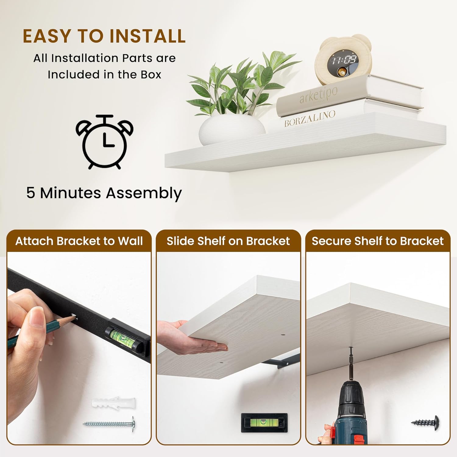 - Maximize Space: Maximize your wall space without sacrificing style. These shelves fit snugly in tight corners, above desks, or in narrow hallways, keeping floors clear while beautifully showcasing your favorite items