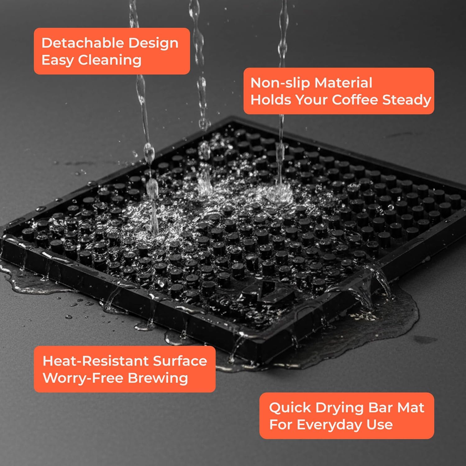 - Heat-Resistant & Spill-Proof: The non-slip silicone bar mat for countertop securely holds your coffee maker. This removable and fast drying mat is heatproof and waterproof, making cleaning easy and simplifying your daily brewing routine.